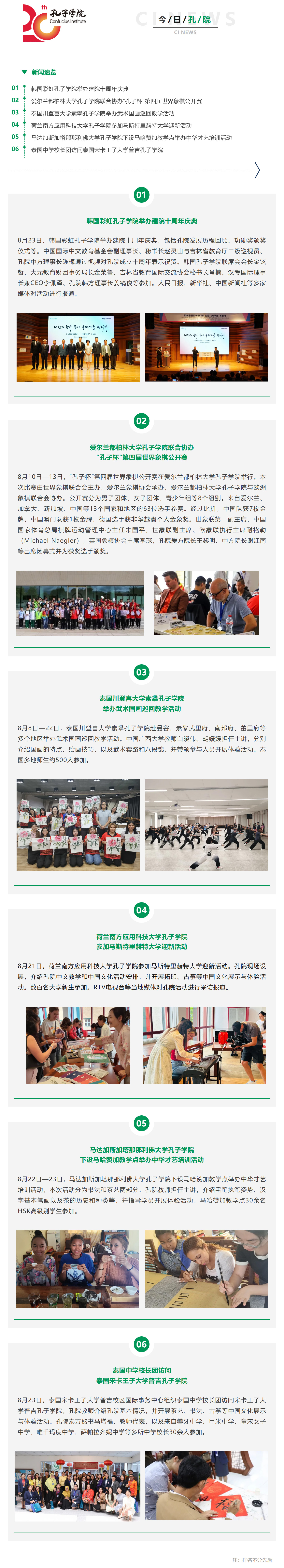 韓國彩虹孔子學院舉辦建院十周年慶典等6則